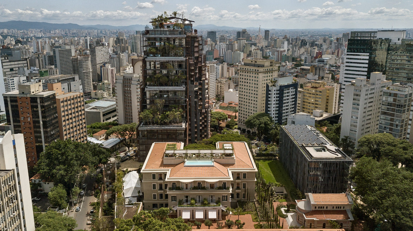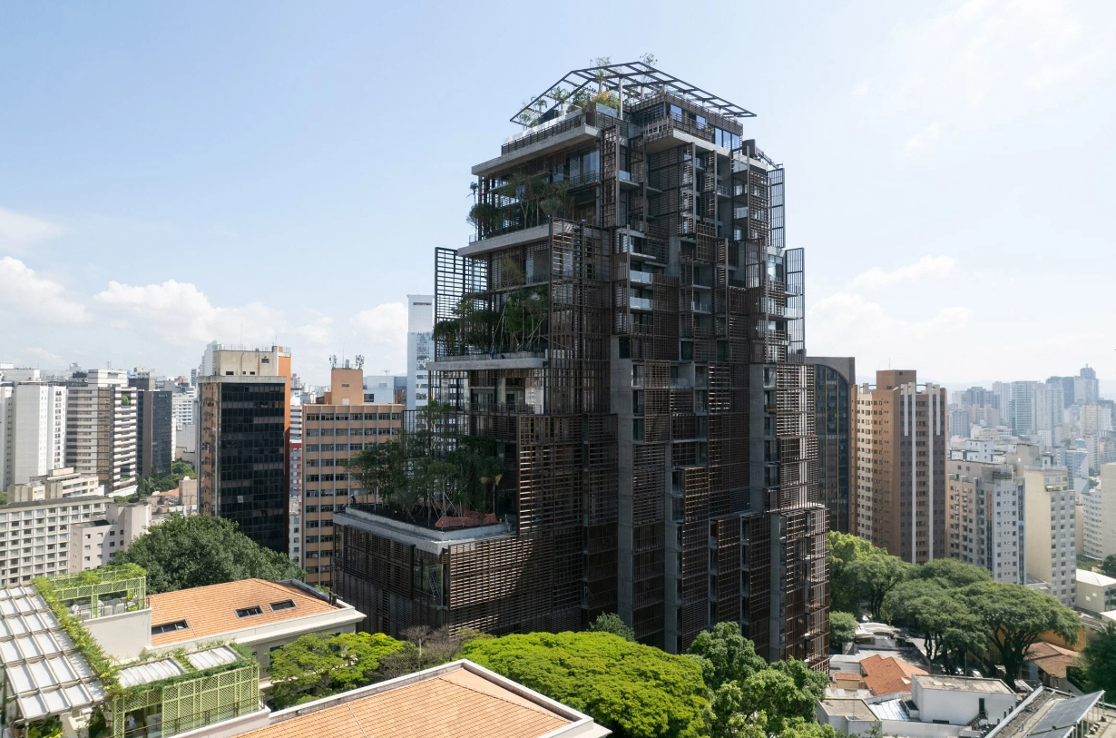 Située près de l’Avenida Paulista, la Mata Atlantica Tower se distingue par sa façade en treillis de bois et ses jardins verticaux. Ces derniers accueillent plus de 10 000 arbres locaux, visant à restaurer la flore et la faune indigènes de la forêt atlantique brésilienne. Avec ses 100 mètres de hauteur, la tour propose des balcons verdoyants pour ses 114 chambres d’hôtel et ses 100 suites privées mises en vente.