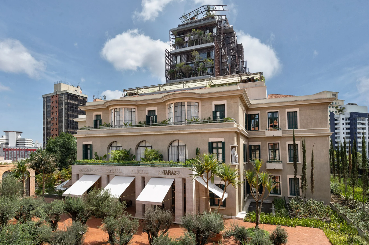 Le complexe Rosewood São Paulo s'étend également sur un bâtiment historique : une ancienne maternité construite dans les années 1950, partie intégrante de l'hôpital Matarazzo. Ce bâtiment à l’architecture italienne, où sont nés plus de 500 000 Brésiliens, a été méticuleusement rénové pour accueillir 46 chambres supplémentaires, le lobby de l'hôtel, ainsi que plusieurs restaurants et bars. Ce mariage entre la modernité de la tour de Jean Nouvel et l'élégance historique de la maternité traduit une volonté de lier le passé culturel de São Paulo à son avenir dynamique.