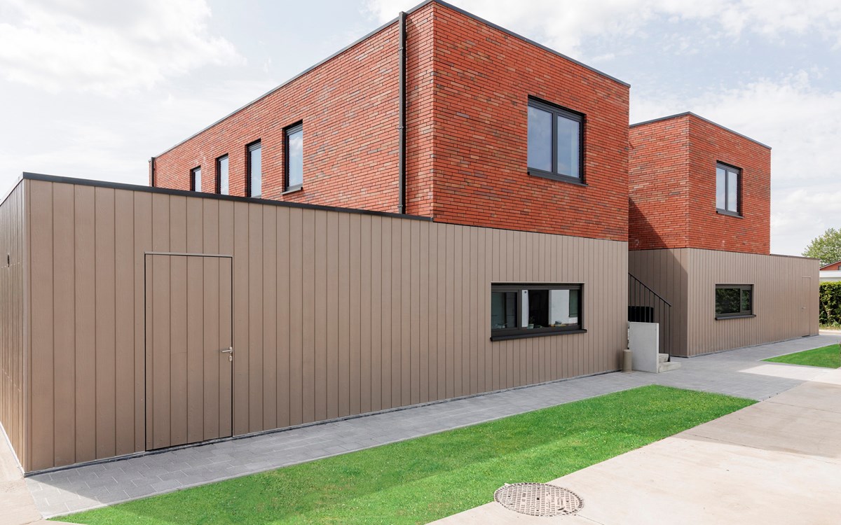 Jeu subtil entre les lames Cedral et les briques de parement aux nuances variées