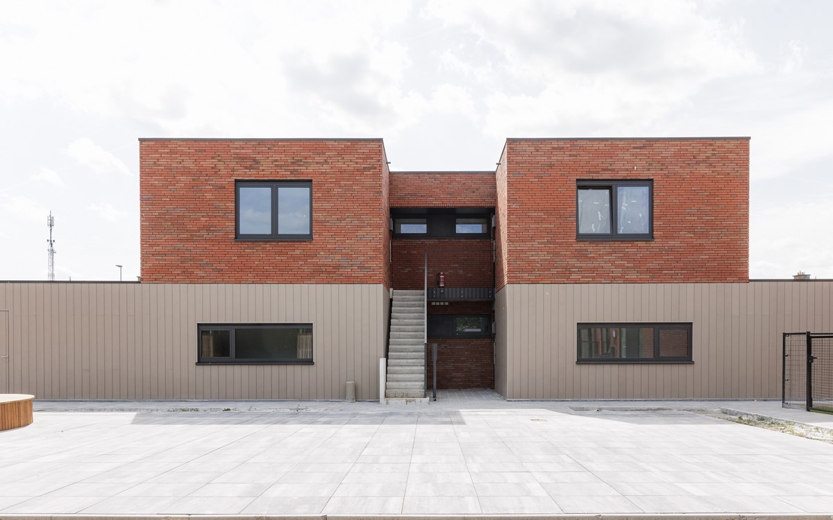 À proximité du centre de Ruiselede, dans un lotissement existant entre les rues Toekomstlaan, Molenstraat et Groenestraat, deux nouveaux bâtiments ont été érigés. Chacun d'eux abrite cinq logements sociaux composés de deux chambres à coucher, ainsi que d'un espace extérieur privé. L'aspect extérieur de ces constructions témoigne de la parfaite alliance entre le logement social et une ingénierie architecturale innovante. En effet, la façade présente une finition soignée, avec une élégante combinaison de sidings Cedral Click Wood de couleur brun atlas et de briques de parement aux nuances variées. Cette réalisation démontre ainsi que l'habitat social peut s'associer harmonieusement à des choix architecturaux astucieux.