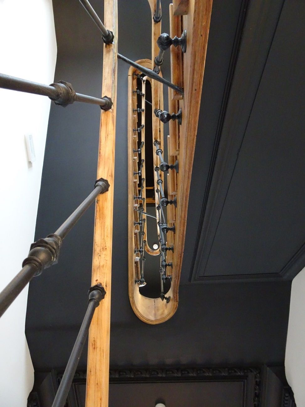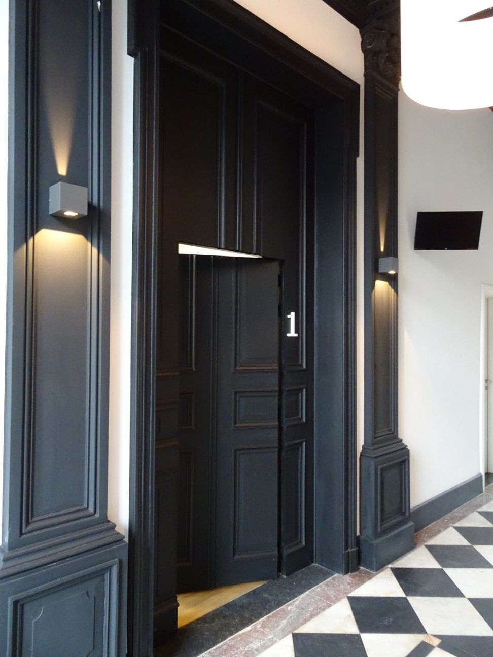 « Le dialogue entre la nouvelle construction et le bâtiment existant réside dans le traitement des détails », continue l’architecte. « La nouvelle peinture de façade permet de valoriser la qualité architecturale manifeste de la maison de maître rénovée. Le contraste des couleurs et des matériaux permet la mise en valeur des détails et des moulures du bâtiment renforçant son caractère et son identité. »