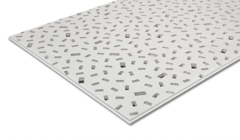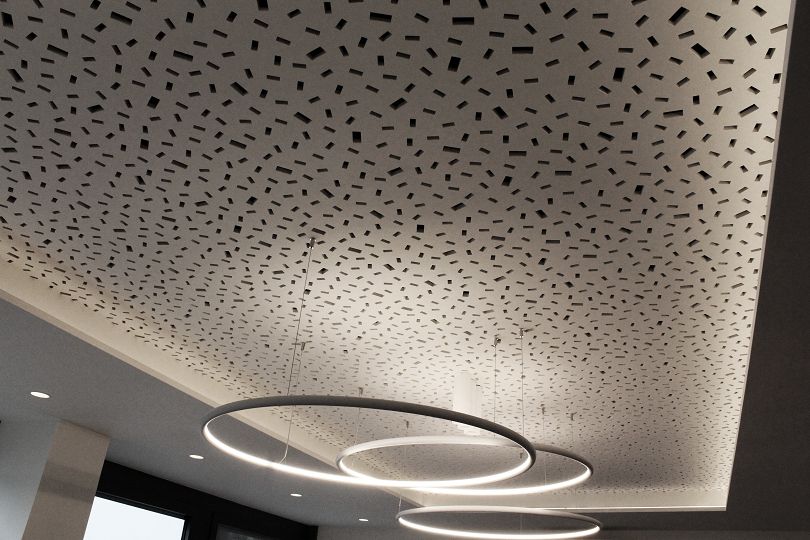 En matière de design, les plaques de plâtre de Knauf offrent un éventail de possibilités, tant au niveau de la forme (droites, courbes, arrondies) qu’au niveau des perforations (rondes ou rectangulaires, continues ou en quinconce, régulières ou dispersées, en blocs ou en stries). Le motif Confetti est une grande nouveauté : il présente des perforations rectangulaires irrégulières, pour un résultat contemporain bluffant.