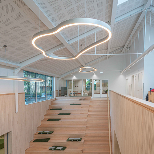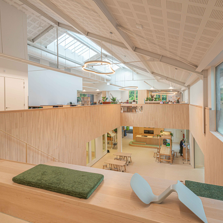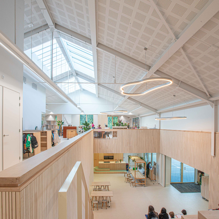 « On s’attendrait à ce qu’il y ait une forte réverbération dans un grand espace ouvert », écrivait un journaliste du quotidien néerlandais BN DeStem l’été dernier, après une visite au nouveau centre IKC Het Leerhuis à Dongen (Pays-Bas). L’école était presque terminée, et le journaliste s’étonnait de l’ambiance sonore très feutrée. Un résultat obtenu grâce aux panneaux Usystem Roof DS Acoustic, qui ont ainsi connu leur première néerlandaise.