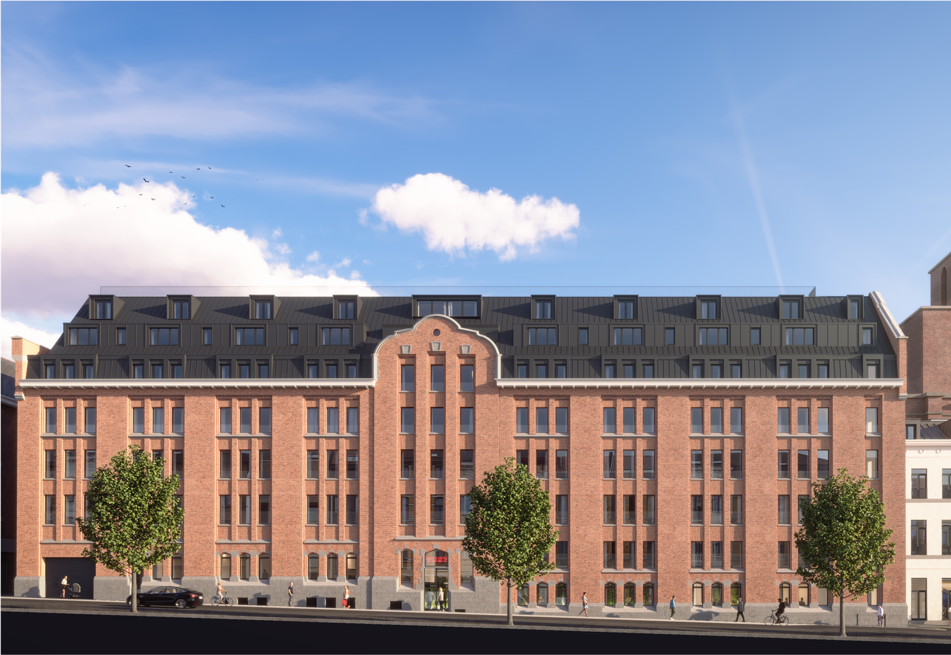 Le concept unique développé par YUST a déjà ses preuves à Anvers et à Liège. Comme dans ces autres villes, YUST proposera des séjours de courte et de longue durée ainsi que des espaces de co-working, des salles de réunion, un restaurant et un bar. La formule YUST a pour objectif de favoriser les échanges entre les résidents et les visiteurs, redéfinissant ainsi le concept d’urban living à Bruxelles. Outre les infrastructures horeca et les espaces communs situés au rez-de-chaussée, les étages supérieurs abriteront 49 chambres d’hôtel et 90 appartements de co-living.