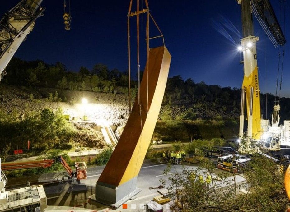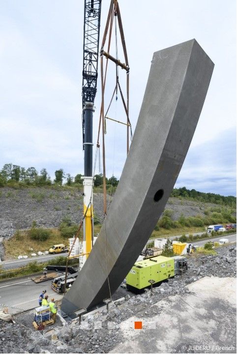 Plusieurs médias ont relaté ces derniers jours le début de l’installation, de part et d’autre de l’autoroute E411, de l’Arc Majeur, une gigantesque sculpture métallique conçue par Bernar Venet. Le chantier d’assemblage des quatre tronçons se déroulera en différentes phases jusqu’en septembre. Coup d’œil sur ce qui s’apparente à une véritable prouesse technique.