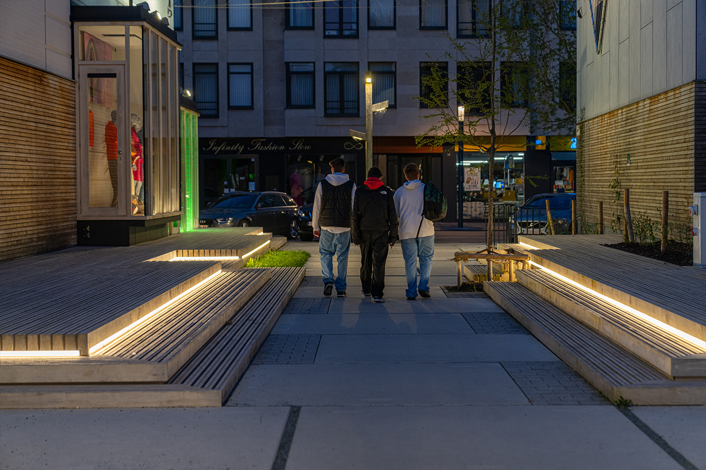 Grâce à notre large gamme de luminaires, nous leur avons proposé une solution qui offre une ambiance agréable, qui donne envie aux gens de se détendre et se rencontrer. Mais également un éclairage uniforme qui évite toute zone d’ombre et met en évidence les obstacles afin que les piétons ne trébuchent pas.