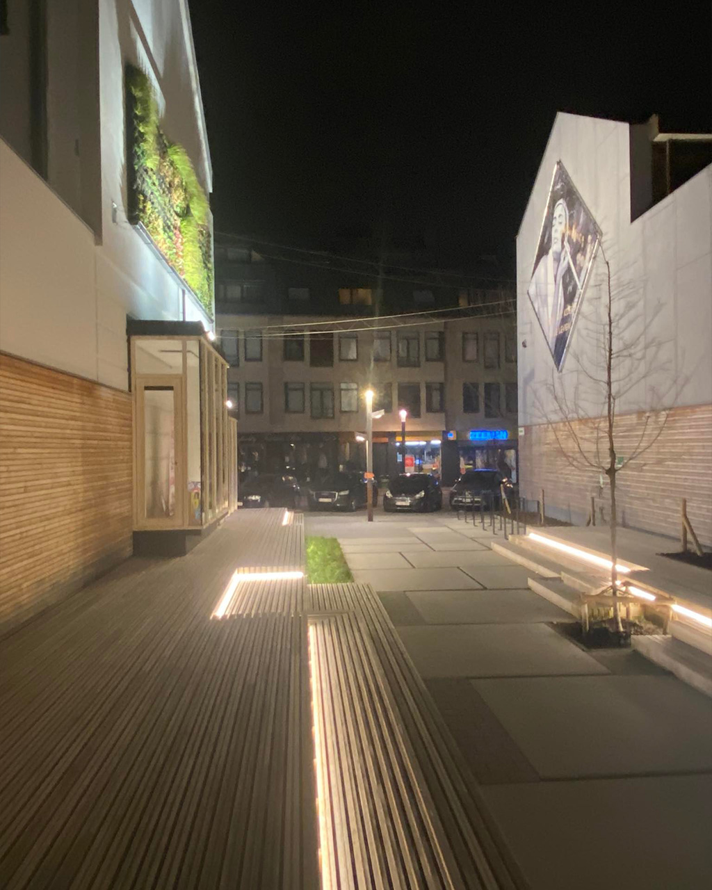 Afin d’atteindre ces objectifs et faire de ce passage piétonnier un point d’attractivité dans la ville, les responsables ont installé un jardin vertical, plusieurs bancs et œuvres d’art pour créer un lieu de détente et de convivialité. Ils souhaitaient également promouvoir l’économie locale et ont dès lors placé 3 vitrines dans lesquelles les commerçants locaux et les associations peuvent présenter leurs produits et services.