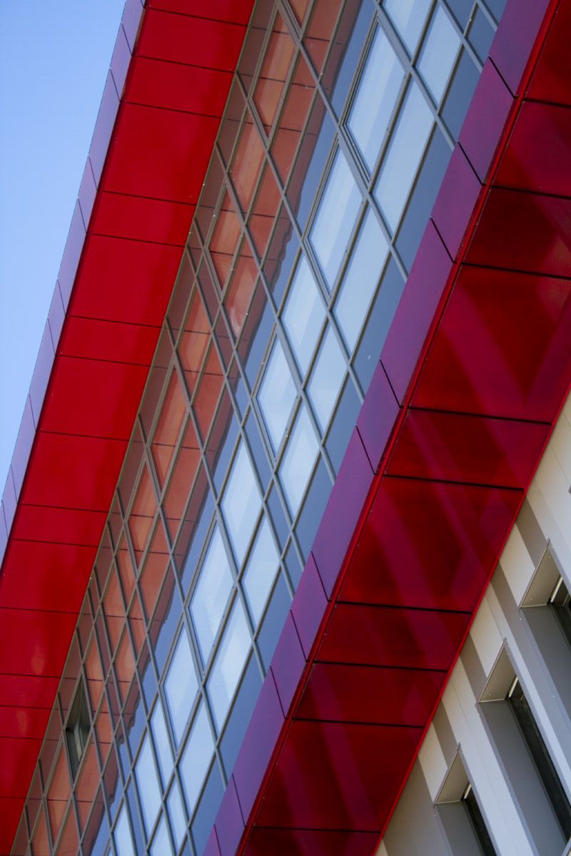 Entre la pose de la première pierre et la livraison, deux années se sont écoulées. Après 2 ans de travaux, ce projet d’envergure est désormais opérationnel et s’inscrit comme l’un des étendards architecturaux de Montpellier Méditerranée Métropole. En plus de la teinte spécifique, la performance esthétique de l’ouvrage réside dans la pose de cassettes en opus romain. La cassette Boréas de couleur rubis offre de larges perspectives d’application et peut s’adapter à la façade de chaque bâtiment. Ceci réduit au maximum les limitations lors de l’installation. Cet ouvrage majestueux exploite à la perfection la gamme de produits d’acier. Le rubis exprime ses facettes à travers les ombres et lumières au gré du soleil. Les lignes horizontales et verticales, l’ombre et la lumière, donnent une nouvelle écriture aux bâtiments. L’emboîtement de la cassette JI Boréas permet d’adapter le produit au calepinage de chaque façade.