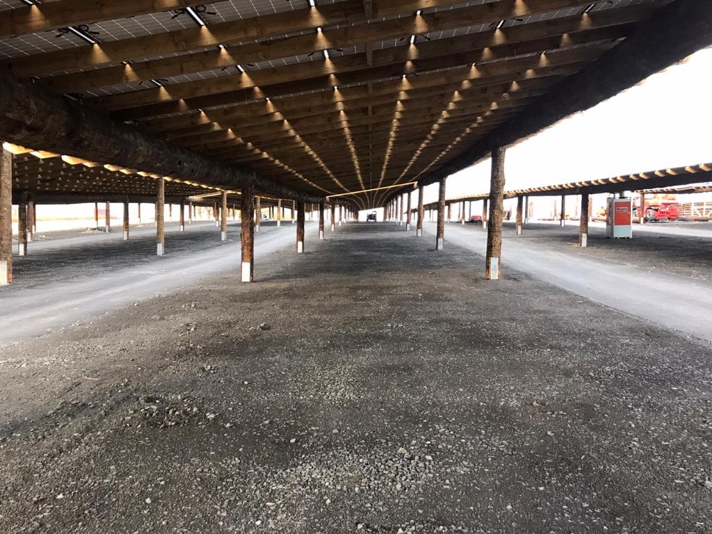 Les 814 modules qui composent ce gigantesque carport de 105 000 m2 sont constitués de troncs d’arbres en douglas local, de poteaux et chevrons pré-entaillés en épicéa local et de panneaux photovoltaïques. Au total, ce carport destiné à accueillir environ 10 000 voitures a nécessité 7.600 m3 de bois et 62 800 panneaux. Une prouesse technique réalisée en un temps très court puisque l’ensemble du chantier a été bouclé en à peine 4 mois, qui plus est, en pleine crise sanitaire ! (...)