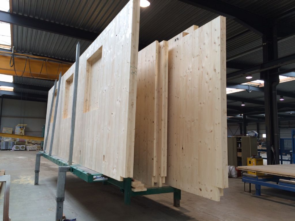 Une fois assemblés, les panneaux sont découpés à longueur par des centres d’usinage automatisés, qui perceront également en usine toutes les ouvertures telles que les portes, fenêtres et autres gaines techniques. A terme, ce sont 15 emplois locaux directs qui seront créés en interne pour produire les quelque 15.000 m³ annuels prévus. Sans compter les retombées indirectes, puisque l’approvisionnement sera assuré par des scieries locales.