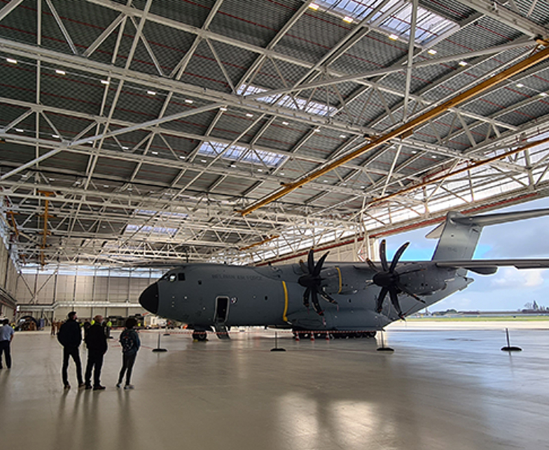 Pour assurer l’entretien des nouveaux avions militaires Airbus A400M de la Défense belge, un nouveau hangar de maintenance devait être construit. En février 2020, Democo a commencé la construction de ce hangar à Melsbroek. Un an et demi plus tard, le bâtiment a été réceptionné. Le nouveau hangar à avions de la Défense belge a été conçu par Styfhals Architects en collaboration avec Kardham.