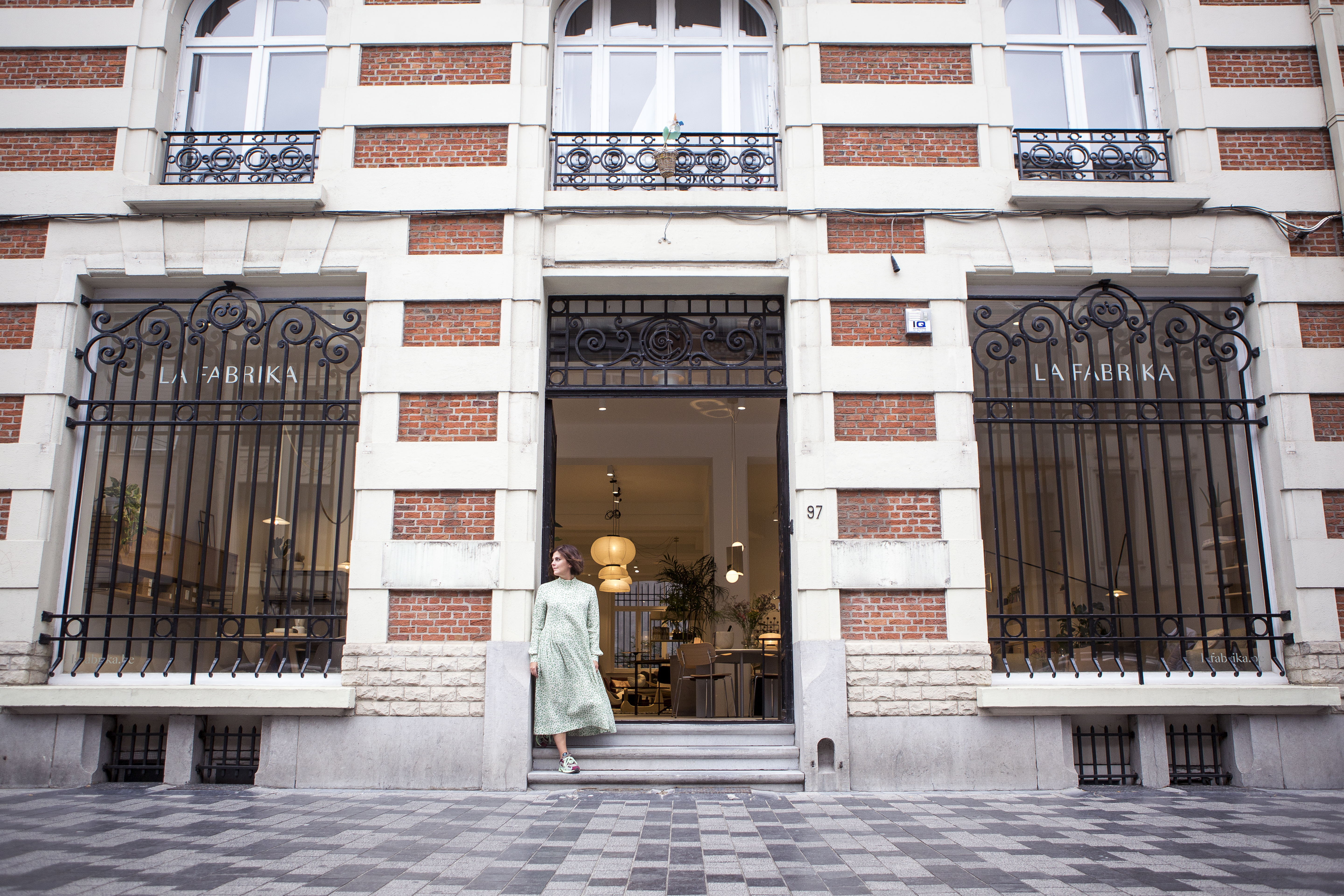 « C'est formidable de pouvoir rester au centre de Bruxelles », déclare la designer, originaire d'Anvers. « L'aventure a démarré ici, elle a grandi et j'ai trouvé mes clients ici. » La Fabrika s'est récemment installée rue Dansaert, dans une maison de maître aux hauts plafonds qui accueillait précédemment un magasin d'optique (Hoet) connu pour ses montures extravagantes. Avec La Fabrika, le bâtiment aura un digne successeur.