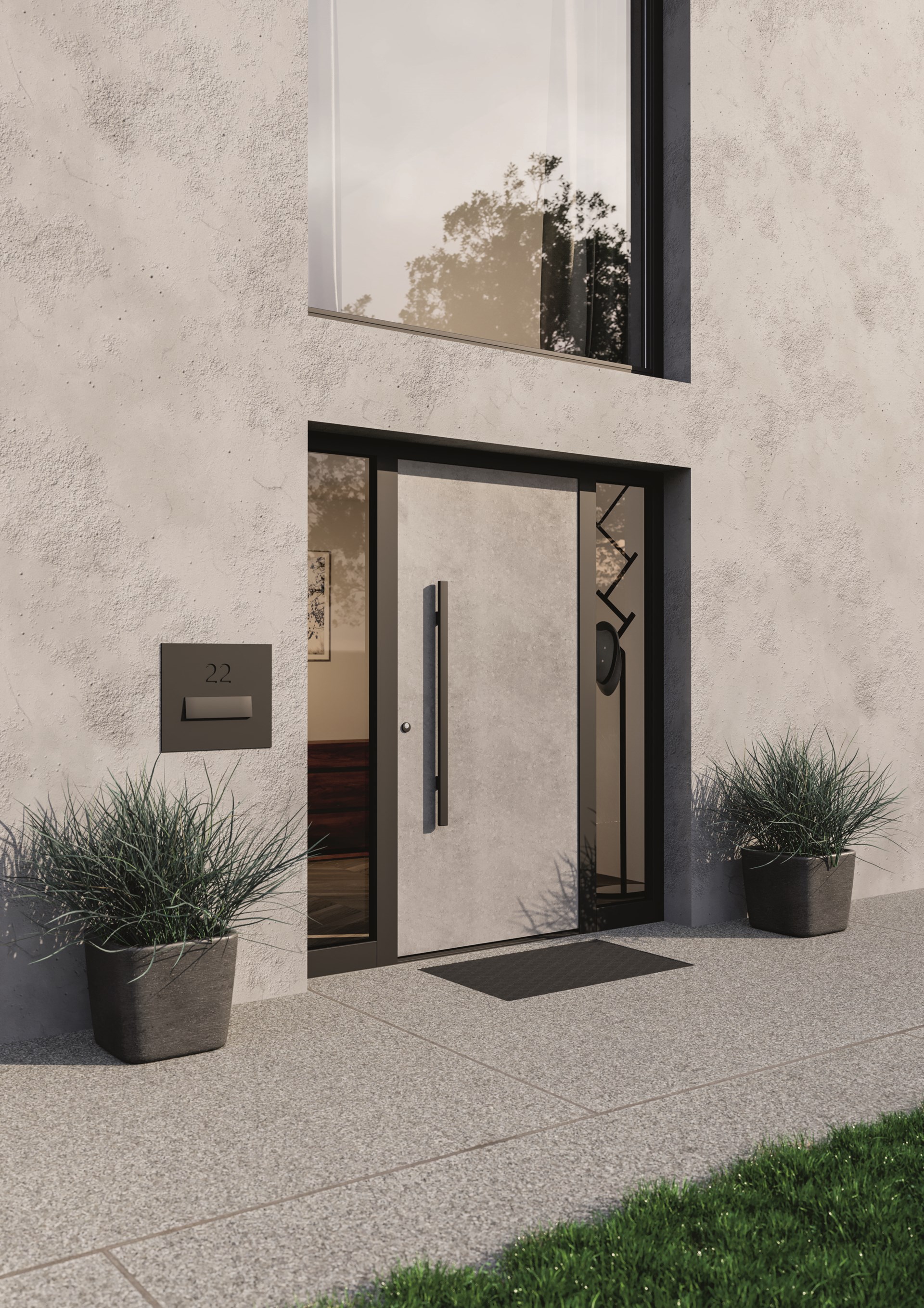 En outre, il est facile d’apporter sa touche personnelle à la porte d'entrée grâce à différentes options de vitrage et à un choix de poignées extérieures. De plus, la porte est facile à ouvrir grâce à un code, une empreinte digitale ou un smartphone. Le large éventail d'options et les caractéristiques de haute technologie élèvent la porte d'entrée à un niveau supérieur, offrant un confort maximal.