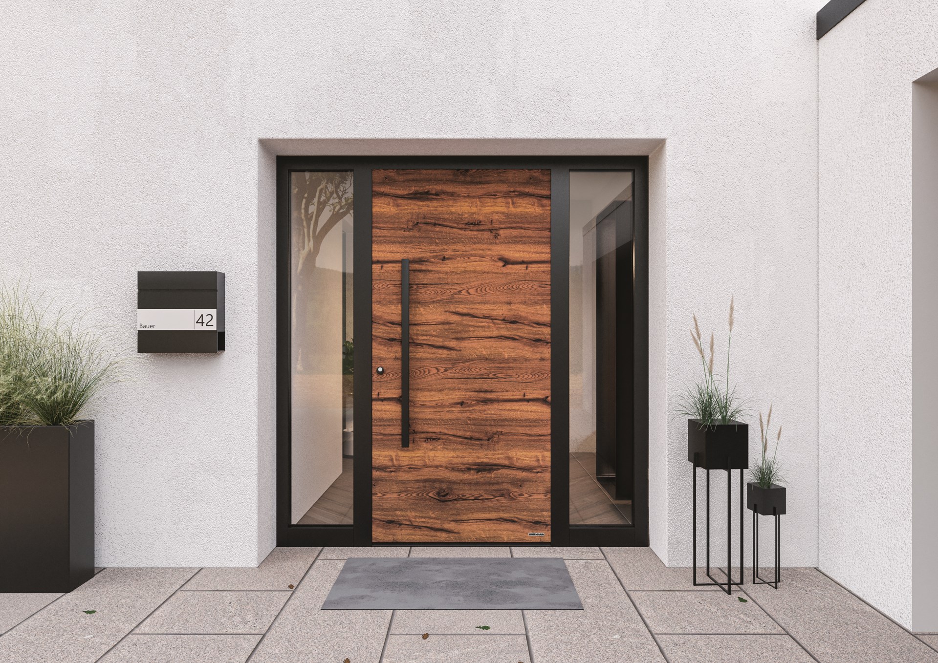 La porte d'entrée s’ouvre généralement sur un lieu qui rime avec accueil chaleureux. Hörmann est le choix malin pour une porte d'entrée qui répond à la fois au style souhaité et aux exigences techniques. Depuis 60 ans, Hörmann fournit des portails et des portes sur mesure de haute qualité. Soucieux de la durabilité et d'une qualité supérieure pour chaque style, Hörmann continue d'élargir sa gamme de produits. La nouvelle finition Thermosafe Decoral pour les portes extérieures permet de répondre à toutes les exigences.