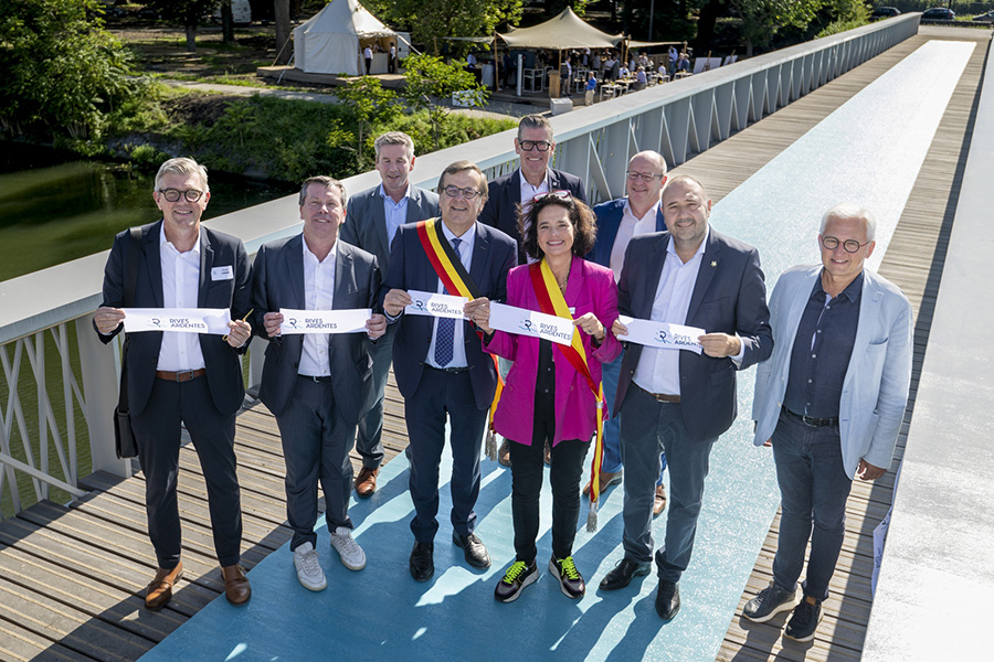 Les ministres Christophe Collignon et Frédéric Daerden, le bourgmestre de Liège Willy Demeyer et la première échevine Christine Defraigne, ainsi que les promoteurs NEO LEGIA, ont inauguré aujourd’hui à Liège la nouvelle passerelle cyclable et piétonne Passerelle des Reflets. Ce nouveau pont sur la Darse de Meuse reliera le futur arrêt de tram ‘Astrid’ au nouvel écoquartier Rives Ardentes. Au printemps 2024, la passerelle sera totalement prête à l’emploi.