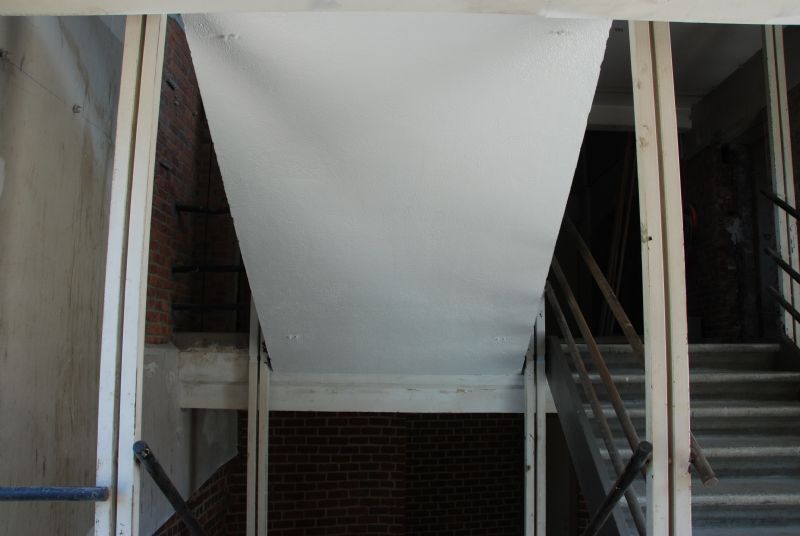 Afin de déterminer la bonne épaisseur de protection, Promat s'adressa au professeur Franssen de l'Université de Liège et à l' I.S.I.B. Franssen fit une étude approfondie de la résistance au feu des escaliers. Sur base de ces données et de notre documentation pour l'application de PROMAPAINT®-SC3 sur le béton, l'I.S.I.B. rédigea une recommandation de chantier.