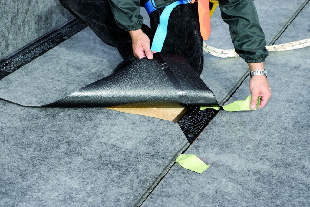 Pour le projet de Baasrode-Dendermonde, les entreprises ARWO-BOUW et Icopal, expert en recouvrement de toits étanches, ont uni leurs forces afin de rendre la construction en bois hermétique d’une manière sûre. Vu qu’une toiture en bois est imperméable à l’air mais pas à la vapeur, elle nécessite une finition robuste comprenant un écran pare-vapeur. « Il faut tenir compte, au soudage de l’écran pare-vapeur, de la combustibilité du matériau. L’écran est cloué de façon invisible dans le joint de soudure ou est autoadhésif. Le joint de soudure ou joint de sécurité est composé d’une bande autocollante de quelques centimètres de large grâce à laquelle le support en bois est protégé contre la flamme émise lors de l’application du reste du joint de soudure. De cette façon, l’écran pare-vapeur peut être placé de manière sûre et étanche », détaille Greet Woestenborghs d’ARWO-BOUW. « Les solutions Sicotec, Sicotherm et Vedagard Safety Plus d’Icopal sont particulièrement bien adaptées à un support sensible à la chaleur tel que le bois, car ces produits possèdent un joint de sécurité unique qui offre une protection supplémentaire », poursuit Woestenborghs.