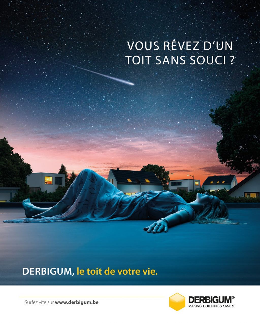 Dans la construction privée, on voit de plus en plus une architecture moderne avec des toitures plates. Mais là où les fabricants de tuiles sont bien connus du grand public, il en est tout autrement pour les fabricants de roofing. Et c’est à ça que Derbigum veut remédier grâce à sa campagne « Derbigum, le toit de votre vie ». Depuis des années, Derbigum s’active dans l’innovation de membranes d’étanchéité : pensez au lancement en 2010 de la première membrane végétale au monde, Derbipure®, ou récemment la gamme Derbigum® Aquatop, spécialement conçue pour la récupération des eaux de pluie. Outre ces produits innovants, Derbigum investit aussi pleinement dans la durabilité de ses produits, tant sur le plan écologique que sur leur longévité. La preuve : une étude scientifique récente du British Board of Agrément (BBA) en Angleterre, confirme que la durée de vie des membranes Derbigum est d’au moins 40 ans. Une information trop peu connue du grand public. Avec cette campagne média, lancée dès le début du mois de mars, Derbigum espère déjà mieux faire connaître les nombreux avantages de ses membranes d’étanchéité auprès du grand public.