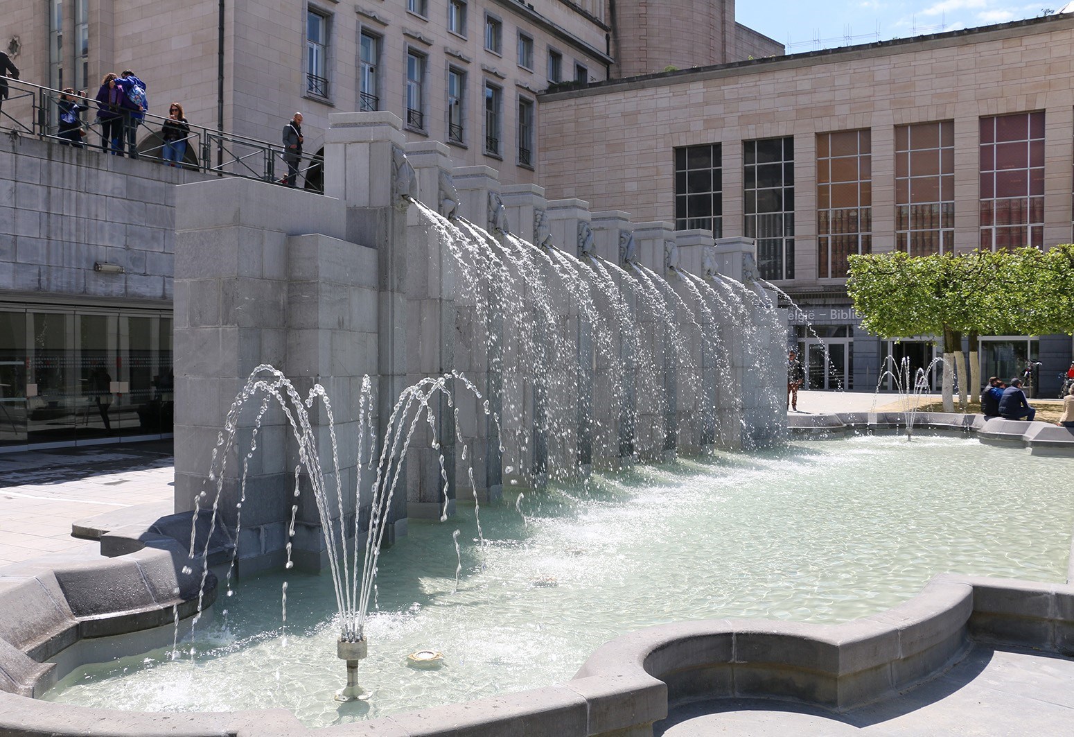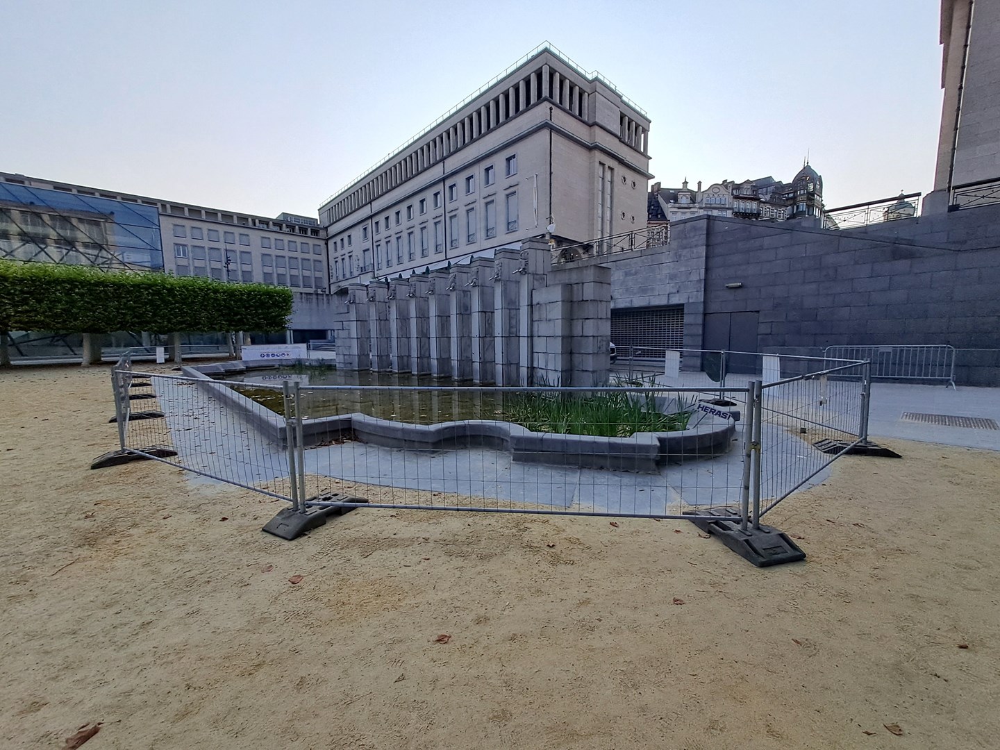 Conçue dans les années cinquante, la grande fontaine en pierre bleue située au pied des escaliers menant au Coudenberg n’est actuellement plus fonctionnelle. Des analyses ont permis de découvrir que des éléments externes ont bouché les tuyaux qui relient la cuve de 120 m³ à la fontaine et endommagé les pompes.