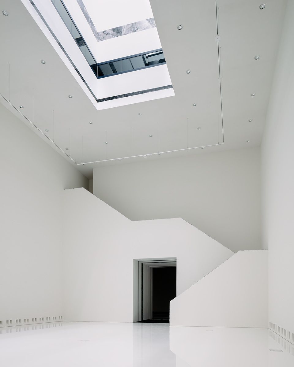 Une succession d'expériences spatiales verticales fortes est créée en dématérialisant l'expérience du visiteur et en la juxtaposant à l'identité historique du bâtiment. Partout où la nouvelle extension "coupe" la masse massive du musée, de subtiles incrustations de marbre sont présentes, reflétant la matérialité de l'élégant musée du XIXe siècle. Un impressionnant et long escalier linéaire relie les nouvelles salles d'exposition du premier étage à celles du dernier étage, et donne accès à une mezzanine dédiée à l'exposition d'œuvres d'art précieuses telles que des gravures et des dessins. Ces pièces sombres sont également visibles au travers de quatre puits de lumière et se caractérisent par une couleur bleu foncé intense.