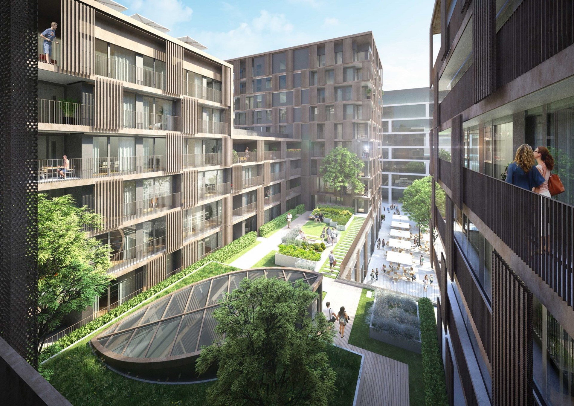 Parce que le projet met un accent particulier sur le développement durable et l’économie circulaire, les habitants pourront aussi profiter d’espaces extérieurs partagés, dont un dédié à l’urban farming en toiture (conçu par Green Surf) et un jardin suspendu. Fait exceptionnel, les sous-sols abriteront plus d’emplacements pour garer les vélos (228 emplacements), que de place de parking pour voiture (200 places). L’immeuble sera également équipé de panneaux photovoltaïques et de toitures végétalisées.