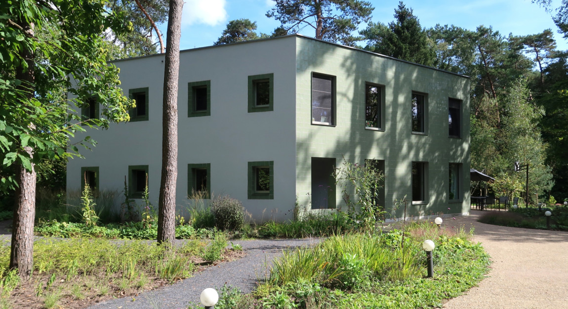 Le bâtiment est hexagonal et accueille 9 résidents adultes qui y vivent sous surveillance. Ils disposent chacun d’un studio privé moderne de 30 m² et partagent une grande salle à manger et un salon commun. La vie prime sur les soins, c’est pourquoi la Villa Kameleon ne ressemble en rien à un centre de soins classique. Ni à l'intérieur, ni à l'extérieur. Trois façades en crépi, trois façades en carreaux de céramique se combinent pour former un ensemble de neuf studios.