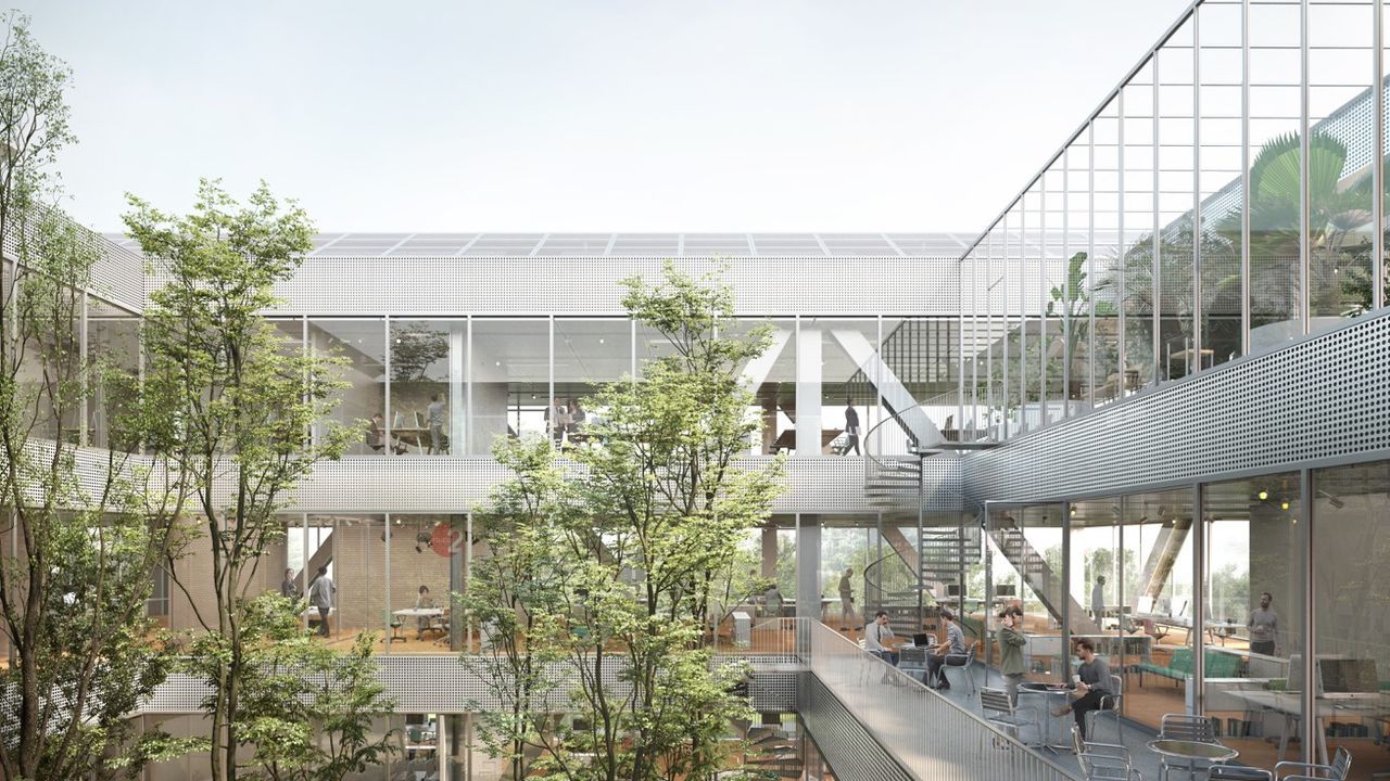 "Le bâtiment est construit autour de cinq grands jardins intérieurs accessibles depuis les espaces de travail", explique l'architecte paysagiste Bas Smets du Bureau Bas Smets. "Grâce au positionnement astucieux du bâtiment dans le site, les grands arbres existants dans le parc sont préservés au maximum. Par conséquent, le bâtiment offre simultanément des vues sur le parc public existant et des aperçus des jardins intimes à l'intérieur."