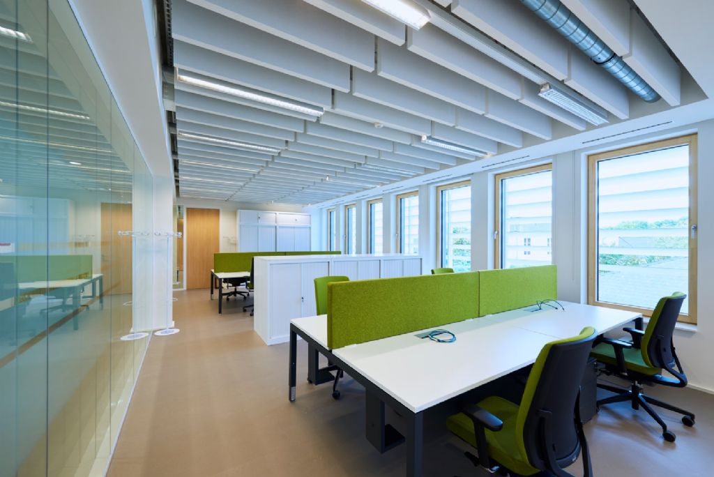 L’immeuble de bureaux offre près de 3150 m² avec une ambition environnementale très pointue par le choix des matériaux et par ses qualités de faibles consommations énergétiques (critère immeuble passif, châssis bois triple vitrage, protection solaire, lumière naturelle omni présente et parkings ventilés et ouverts sous l’immeuble).