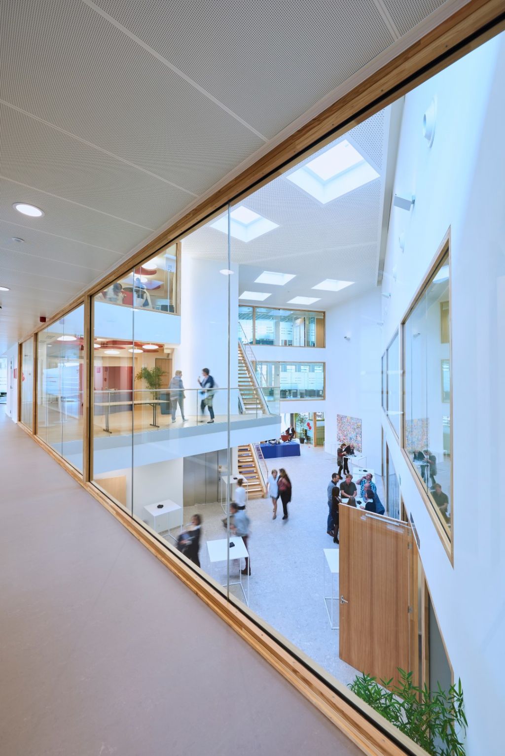 Au cœur de ce futur bâtiment de 3 niveaux, un hall central sur toute la hauteur distribue de manière conviviale les différents départements administratifs en mettant l’accent sur la transparence et la qualité des échanges entre les personnes. Au rez de chaussée, certaines affectations sont accessibles à des visiteurs externes dont notamment une salle polyvalente destinée par exemple à de petites conférences ou exposés à caractère médical ou scientifique.