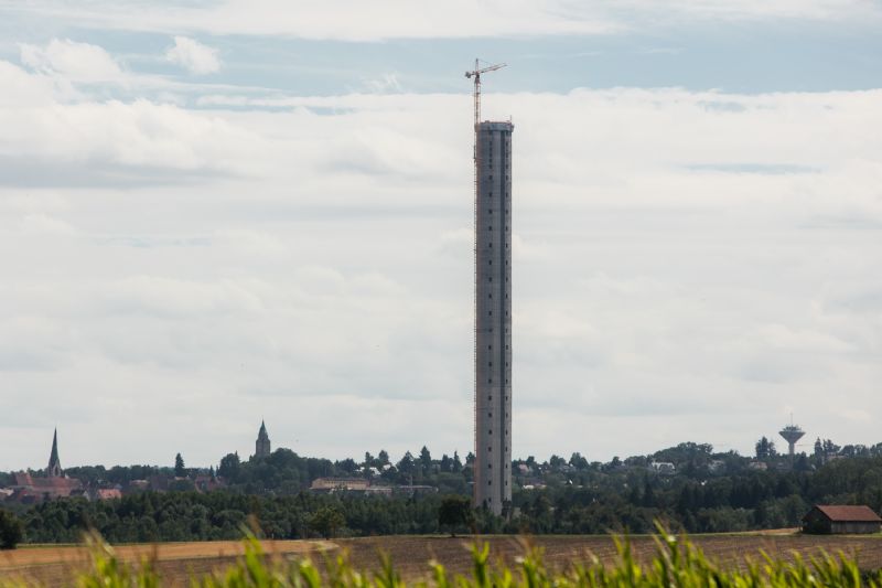 Thyssenkrupp vient de terminer la construction de sa propre tour d’essai. Du haut de ses 244 m, elle domine la bourgade de Rottweil (près de l’aéroport de Suttgart). Sur un site dédié, les Internautes ont pu suivre presque en direct son érection. Le temps d’installer les cabines, les premiers tests auront lieu en mars.