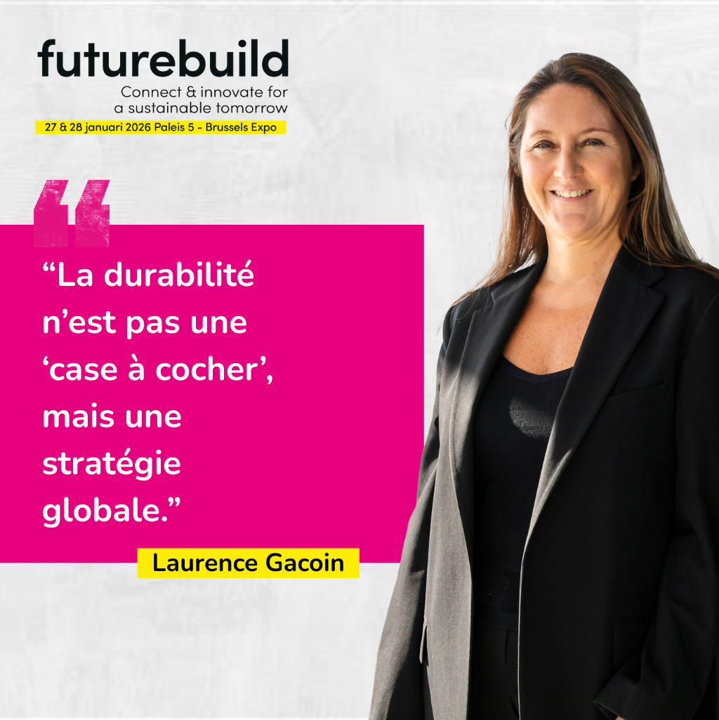 La transformation durable du secteur immobilier n’est plus une ambition lointaine. Elle est en plein essor, perceptible sur chaque chantier, dans chaque conception et à travers chaque décision d’investissement. Pour Laurence Gacoin, ambassadrice pour la cible immobilier à Futurebuild Belgium 2026 et membre du Cordeel Group, cette transition n’est pas seulement nécessaire : c’est aussi une opportunité majeure pour rendre le secteur plus fort, plus intelligent et plus résilient. « La transition durable n’est pas un effet de mode. C’est un changement systémique », affirme-t-elle. Une évolution qui redéfinit la valeur des bâtiments, transforme les attentes des investisseurs et modifie la manière dont les utilisateurs vivent les espaces. « Nous devons arrêter de considérer la durabilité comme un supplément. C’est un levier stratégique qui détermine si un bâtiment est réellement prêt pour l’avenir. »