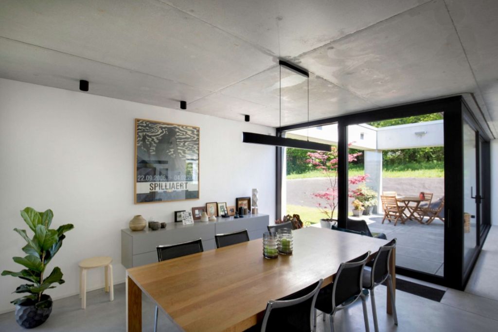 L'habitation réalisée à Nivelles par LR Architectes est parfaitement intégrée dans son environnement. Cette maison unifamiliale offre d'une part une grande intimité et s'ouvre d'autre part largement sur le paysage. Le béton paraissait le choix idéal pour combiner les exigences structurales et formelles du programme de construction.