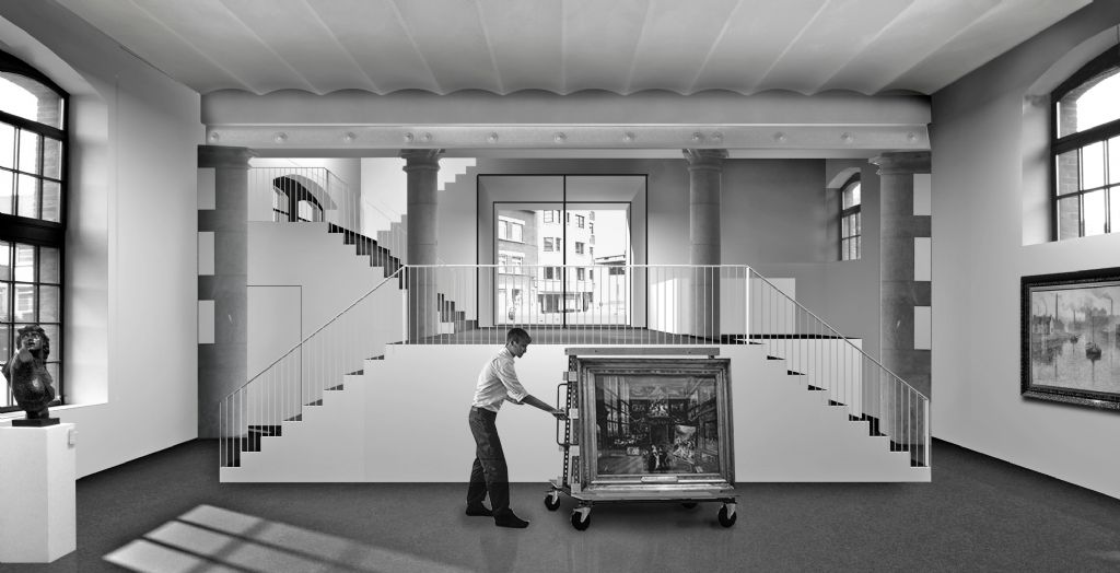 Le Musée des Beaux-Arts de Charleroi,qui occupe aujourd’hui avec ses réserves, ses bureaux, ses collections permanentes et ses expositions temporaires le deuxième étage de l’Hôtel de Ville et les salles d’exposition du Palais des Beaux-Arts, ne bénéficie pas d’un espace adapté, clairement identifiable et qui lui soit dévolu. Avec ce déménagement qui devrait être effectif dès la rentrée de septembre 2018, le Musée rejoindra un espace adapté, réaménagé par Goffart-Polomé architectes : les anciennes Ecuries de la Caserne Defeld (1887) situées au pied le la Tour de Police, Boulevard Mayence.
