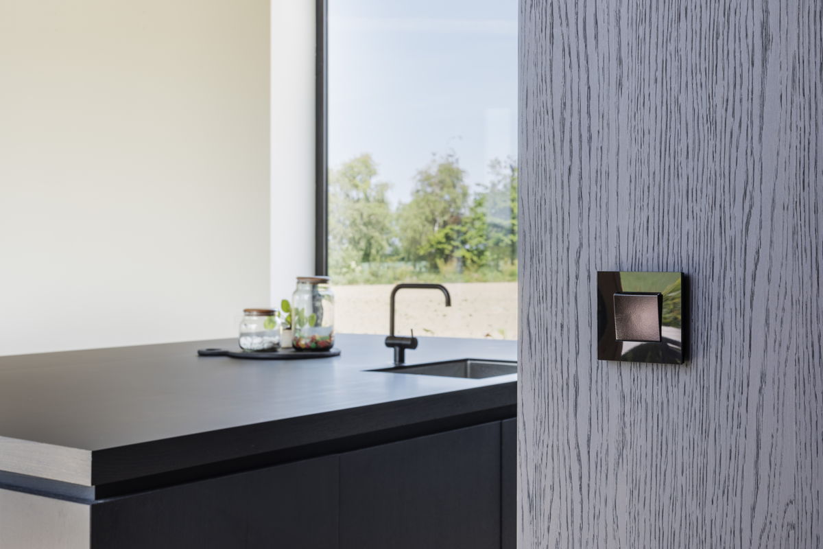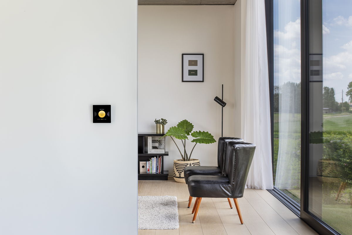 Il y a enfin le Digital black, une interface d’utilisateur numérique enveloppée dans un écrin d'un noir brillant profond. Lorsqu’on l’active, un écran intuitif s’affiche, permettant de commander jusqu’à 12 fonctions et ambiances différentes dans la maison. L’écran tactile d’un noir absolu n’est pas plus grand qu’un interrupteur, ce qui lui permet de s'intégrer à merveille dans chaque intérieur. Même dans le cadre de rénovations, le Digital black se révèle idéal puisqu’il ne requiert aucune modification du câblage électrique. C’est justement cette facilité à se substituer à un interrupteur classique qui a valu à cet écran de commande de pointe le prix Henry Van de Velde, la plus importante récompense de notre pays en matière de design.