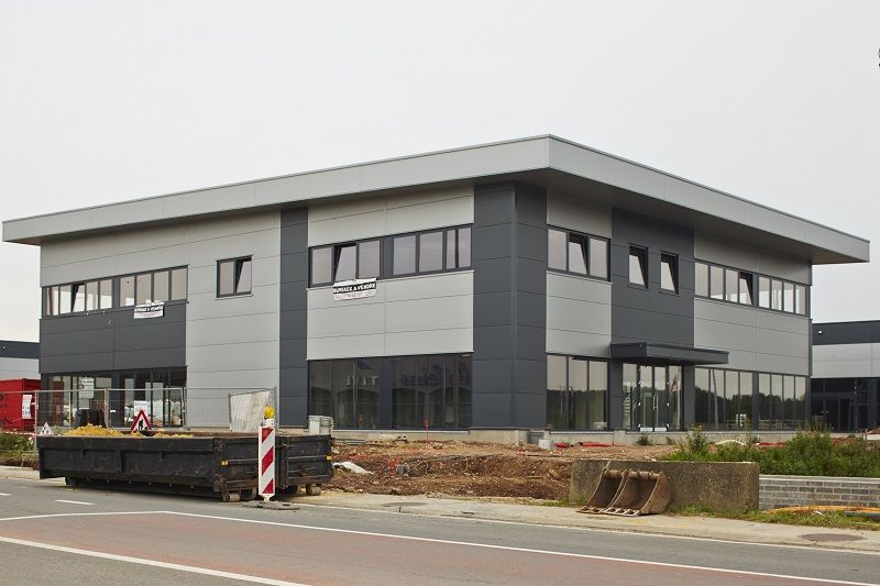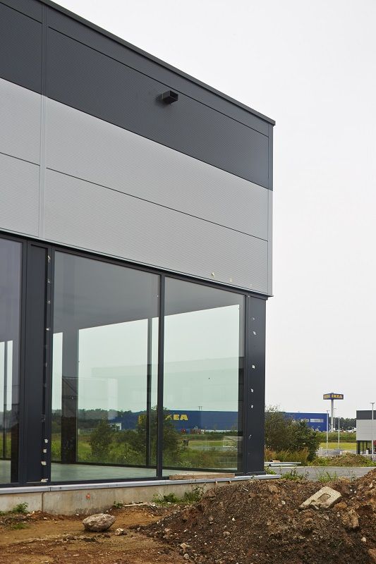 Gijbels a mené la construction de l’ensemble sur une période de 12 mois. Presque la routine pour cette entreprise habituée aux bâtiments industriels et commerciaux. La structure métallique est fabriquée en atelier puis montée sur place. Les murs extérieurs sont faits de panneaux sandwichs de 10 cm d’épaisseur avec une isolation en polyurétane (PUR), laqués dans différentes couleurs. En toiture, une épaisseur de 8 cm d’isolant (PIR) est posée. Les cloisons intérieures séparant les différentes enseignes sont faites de panneaux préfabriqués en béton. La plupart des commerces se chargeant eux-mêmes de leur agencement intérieur, c’est un gros oeuvre fermé qui leur a été livré il y a quelques semaines.