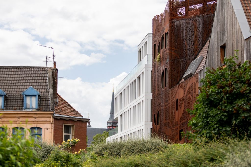 Le nouvel immeuble blanc s'intègre dans un îlot urbain du Vieux-Lille, face à des édifices emblématiques tels que l’Hospice-Comtesse datant du XVIIe siècle et le Tribunal de Grande Instance de Marcel Spender et Jean Willerval, livré en 1970. L'objectif des maîtres d'ouvrage était de faire de ce bâtiment un programme mixte, phare, élagant, remarqué et remarquable. Il s'élève désormais sur six étages, le niveau inférieur étant occupé par une brasserie et le premier étage par un restaurant gastronomique. Les quatre étages supérieurs accueillent 14 logements collectifs aux terrasses et loggias amples, ainsi que de chambres d'hôtel.