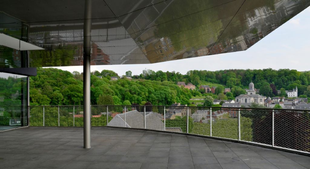 « Notre expérience muséographique, ainsi que les contraintes de contrôle climatique et de luminosité liées à la conservation des œuvres nous conduisent à proposer des plateaux d’expositions principalement en black-box », explique Gil Honoré lorsqu’on évoque les entrées de lumière dans le bâtiment. « Nous avons cependant conservé le fenestrage de l’ancienne façade courbe au Sud, qui regarde la vieille ville et la collégiale, et nous avons par ailleurs créé une très grande baie au R+3 en façade Nord-Ouest, afin d’offrir un lien visuel fort avec la ville. »
