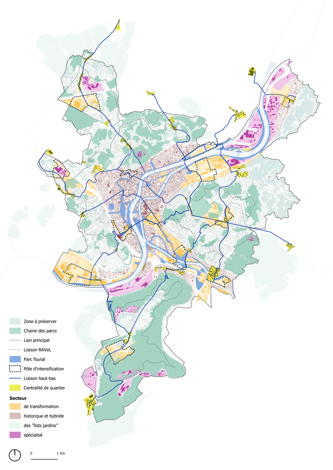 Liège, ville des courtes distances : Axée sur la densité, la mobilité, la nature et la qualité de vie, cette vision identifie de nouveaux axes de développement, favorisant une densification raisonnée autour de pôles et d'axes identifiés.