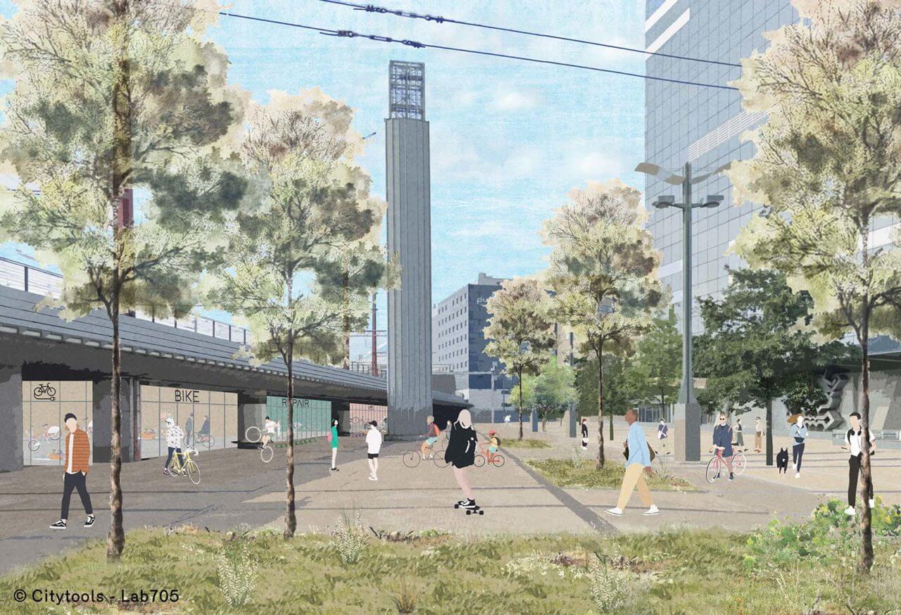 Le fil rouge de ces projets de proximité est le réaménagement ambitieux des espaces ouverts autour de la gare : offrir plus de place aux modes actifs, relier les quartiers depuis l’ilot des Deux Gares jusqu’à la Petite Ceinture, s’inscrire dans un maillage vert et bleu à l’échelle régionale et permettre la création d’équipements publics sur ces espaces publics requalifiés.