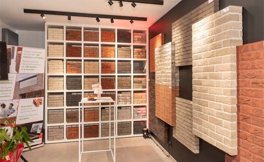 Situé depuis 1992 au numéro 5 de l’Avenue du Monument à Marche-en-Famenne, le showroom a profité récemment d’une importante transformation, permettant d’en doubler la surface. C’est donc à présent sur 90 mètres carrés qu’une grande partie de la gamme de briques est exposée. L’accent est mis sur les nouveautés et sur les produits susceptibles d’être utilisés en Région wallonne.