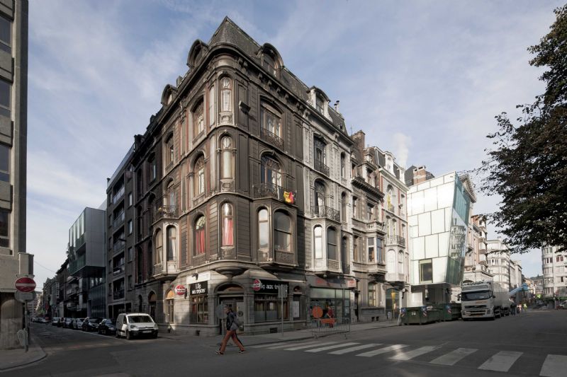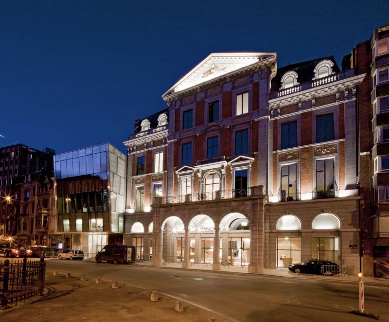 Le programme demandé est de grande ampleur. La surface est doublée, par rapport à l’espace disponible. L’atelier d’architecture cherche à optimiser l’espace, d’abord au sein du bâtiment lui-même, ensuite dans le tissu urbain. L’implantation du projet s’étend ainsi, à partir de l’intérieur de l’îlot, vers les rues voisines. La grande salle, l’accueil, les espaces de circulation, le restaurant, ainsi que des locaux administratifs occupent le bâtiment de 1939. La petite salle, les loges des artistes, la cafétéria et une série de locaux techniques, de stockage et de productions sont quant à eux logés dans les nouveaux volumes, présents sur la Place du XX août, et dans une rue voisine. Enfin, le projet prend également en charge la transformation des locaux de la Société Libre d’Emulation et du Cercle Royal des Beaux-Arts, dont les façades sont visibles depuis une 3e voirie.
