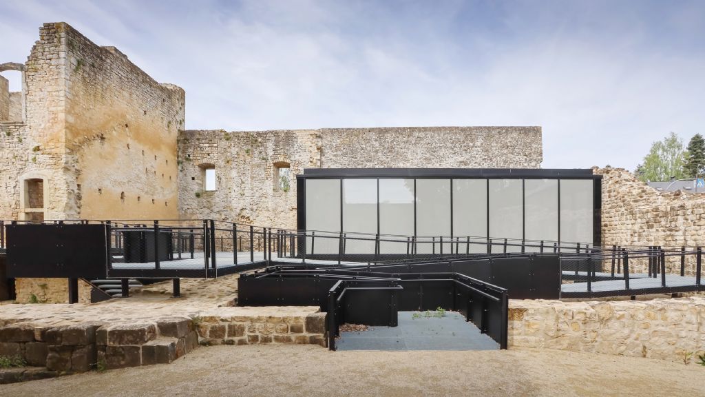Dans la Vallée des Sept Châteaux, à Koerich, visiteurs, artistes et audience profitent désormais du mariage réussi entre conservation du patrimoine et aménagement de nouvelles fonctions. Passerelles, plateformes, rampes et escaliers y créent un parcours inédit. L’intervention pourra être enlevée un jour en laissant un minimum de traces. L’acier a donc été choisi pour son côté filigrane et léger et recyclable. Il a été employé sous diverses formes : en structure tendue, boulonnée, soudée, en maille métallique, en filet inox, en câbles inox et éléments thermolaqués, … Le jury a particulièrement apprécié l’approche honnête et tout en finesse réalisée par l’architecte avec la structure en acier.