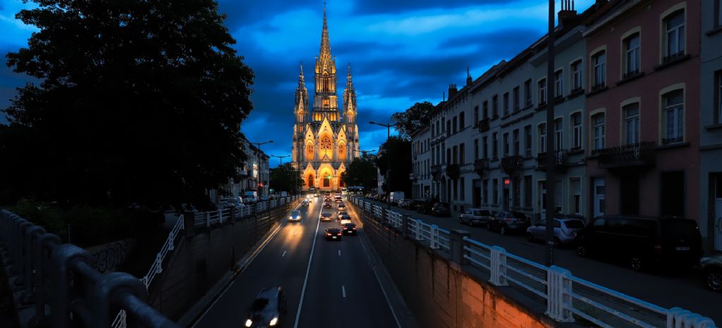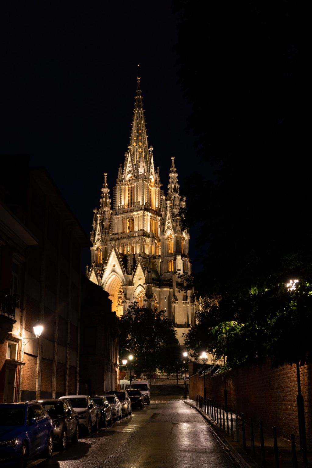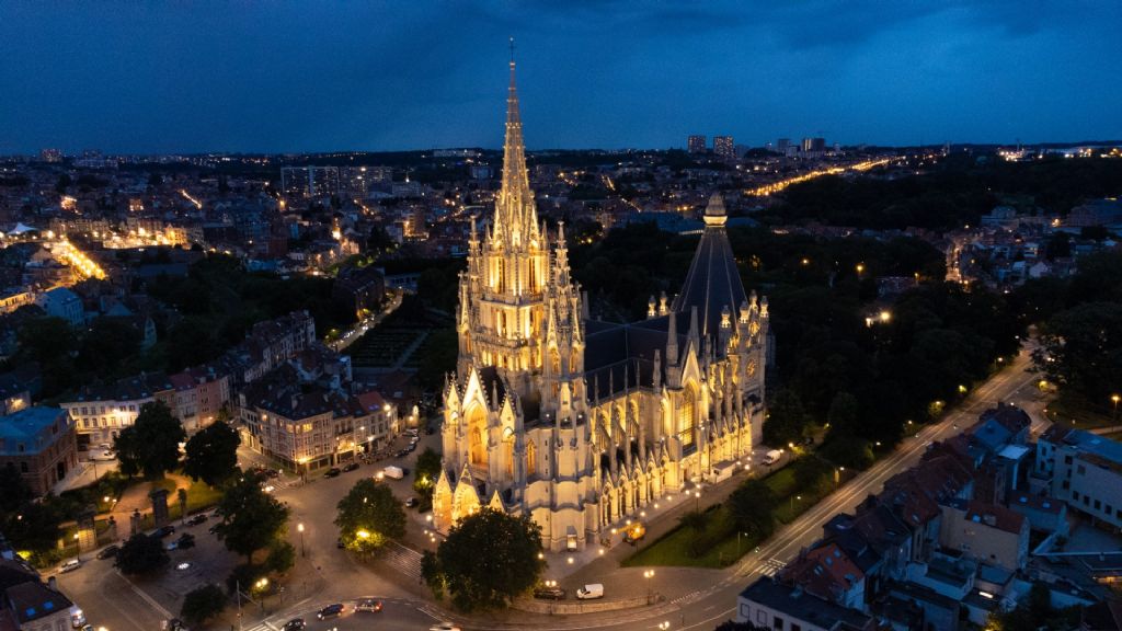 La nuit est tombée. Une lueur dorée illumine désormais les arcs de la majestueuse église Notre-Dame de Laeken et une lumière blanche accentue les éléments de la façade qui s’élèvent vers le ciel. Les concepteurs lumières Light to Light et VK Engineering ont créé un jeu d’ombre et de lumière qui met en valeur l’architecture néo-gothique et donne plus de profondeur aux façades. Le résultat est majestueux.