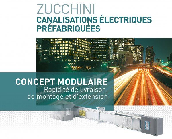 Grâce au nouveau concept modulaire Zucchini, l’installateur peut utiliser des produits de faible puissance (série LBplus) et de puissance moyenne (séries MS et MR/MRf). Ces gammes de produits se composent d’éléments droits, de boîtes de dérivation et d’accessoires divers. Pour les produits relevant du concept modulaire Zucchini, Legrand garantit un délai de livraison de 10 jours ouvrables pour le projet complet.