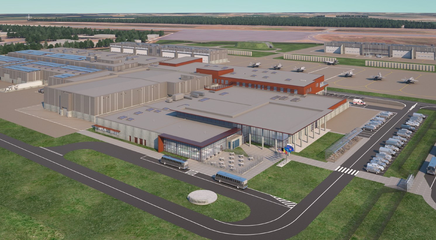 Le lieutenant-général Frédéric Goetynck de la Défense belge ajoute : "Les nouvelles bases domiciliaires des F-35 répondront aux exigences actuelles en matière d'environnement et de climat. De plus, la sécurité et le bien-être de notre personnel sont également au centre des préoccupations, en optimisant l'éclairage, l'acoustique et la ventilation. Les employés de la Défense belge qui pilotent les F-35 ou assurent leur maintenance pourront exercer leur travail dans des conditions optimales."