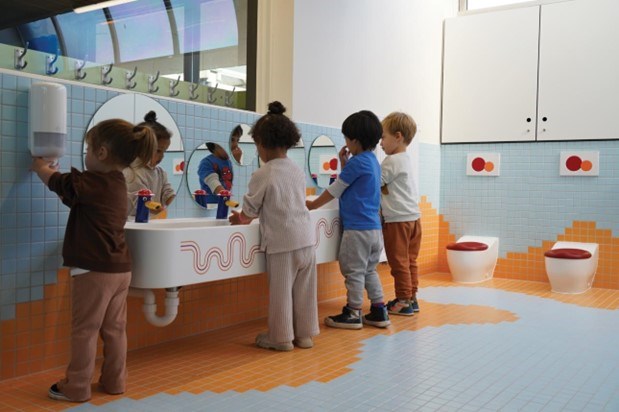 David Peirsman, du groupement scolaire SCOOP, œuvre pour des sanitaires de qualité dans les écoles. Il affirme que les rénovations à prévoir ne doivent pas concerner que l’infrastructure : « Une rénovation implique davantage que simplement rafraîchir les murs et remplacer la céramique. Au moyen de quelques détails et d’un aménagement bien pensés, on peut créer des espaces dans lesquels les enfants se sentiront bien. On peut, par exemple, fixer les toilettes, lavabos et urinoirs à des hauteurs différentes, ou installer des boutons de chasse colorés pour stimuler de manière ludique un usage autonome des toilettes. » Selon Peirsman, les sanitaires scolaires doivent être dotés d’une infrastructure adaptée et être en bon état de fonctionnement, mais aussi donner envie aux enfants de tout âge d’utiliser ces installations.
