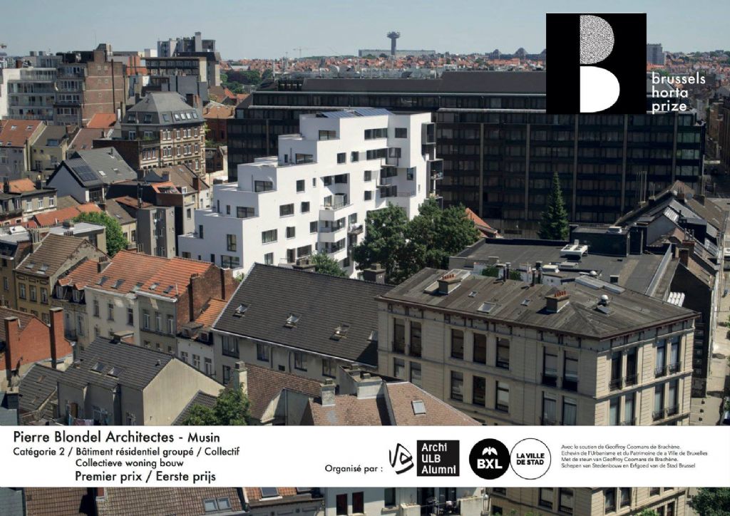 Le projet initial de Musin est un projet de rénovation de 41 logements situés dans un bâtiment des années 1960. Après analyse, le choix s’est porté sur la démolition de l’existant. Le nouveau volume a fait l’objet d’une réflexion attentive en termes d’intégration volumétrique : celle-ci se veut cohérente par rapport à ses gabarits voisins, dans le même temps qu’elle affirme l’identité de son contexte proche. L’ensemble du bloc est travaillé en terrasses afin d’alléger son aspect «monobloc», et le traitement des baies de sa façade sud affirme son identité à l’échelle de la ville Le projet offre également à ses habitants des espaces communautaires divers afin de permettre à ceux-ci de développer un esprit «de quartier». Les espaces intérieurs ont été soignés en terme d’habitabilité : les entrées de lumière naturelle sont toujours valorisées, aussi bien dans les halls collectifs que dans les logements privatifs, et les typologies de logement proposées sont multi-orientées. Le bâtiment atteint les critères passifs et valorise les espaces verts, l’usage de transports publics et du vélos, nombreux dans le quartier.