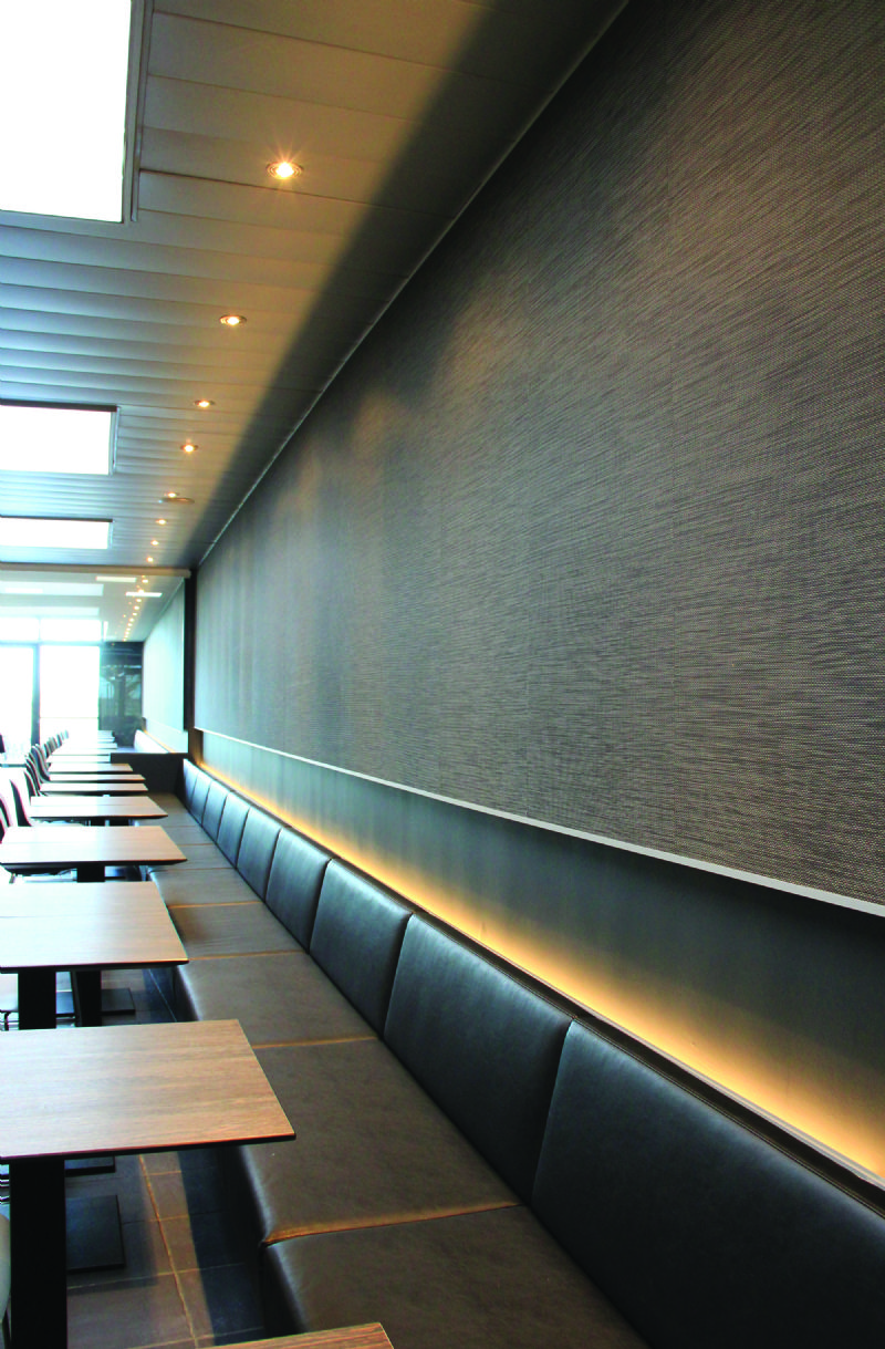 Une acoustique améliorée signifie une réduction de la réflexion des sons, ce qui entraîne une diminution du temps et du volume de résonance. Les nombreuses possibilités de décors permettent la combinaison de cette technique avec la créativité de l’architecte.