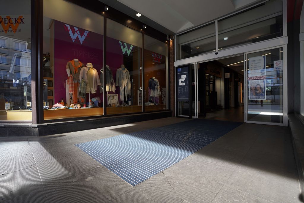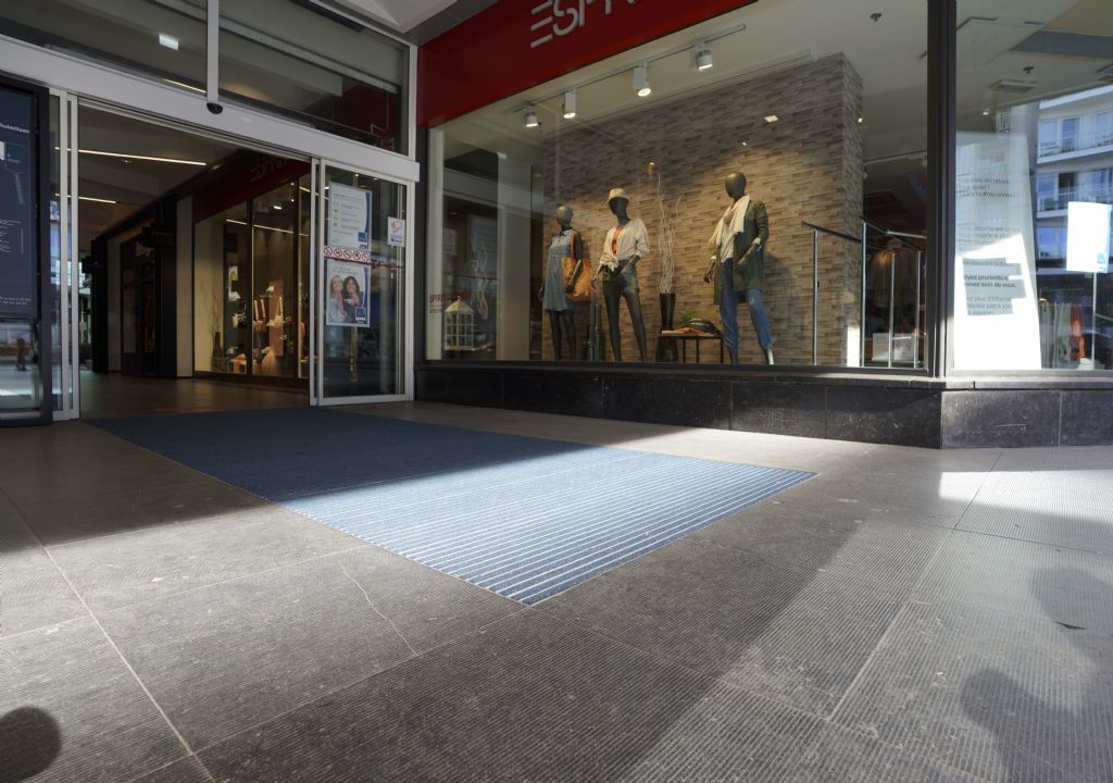 Dans le centre commercial Stockel Square, les quatre accès ont récemment été dotés de nouveaux tapis d'entrée emco très esthétiques. Les tapis d'entrée fabriqués à partir de pneus d'avion qui s'y trouvaient ont été remplacés par un modèle ouvert et enroulable, bien plus pratique sur le plan de l'entretien et du nettoyage. Ils retiennent en outre davantage de salissures et d'humidité dès l'entrée, ce qui permet de réduire les coûts d'entretien des espaces intérieurs.