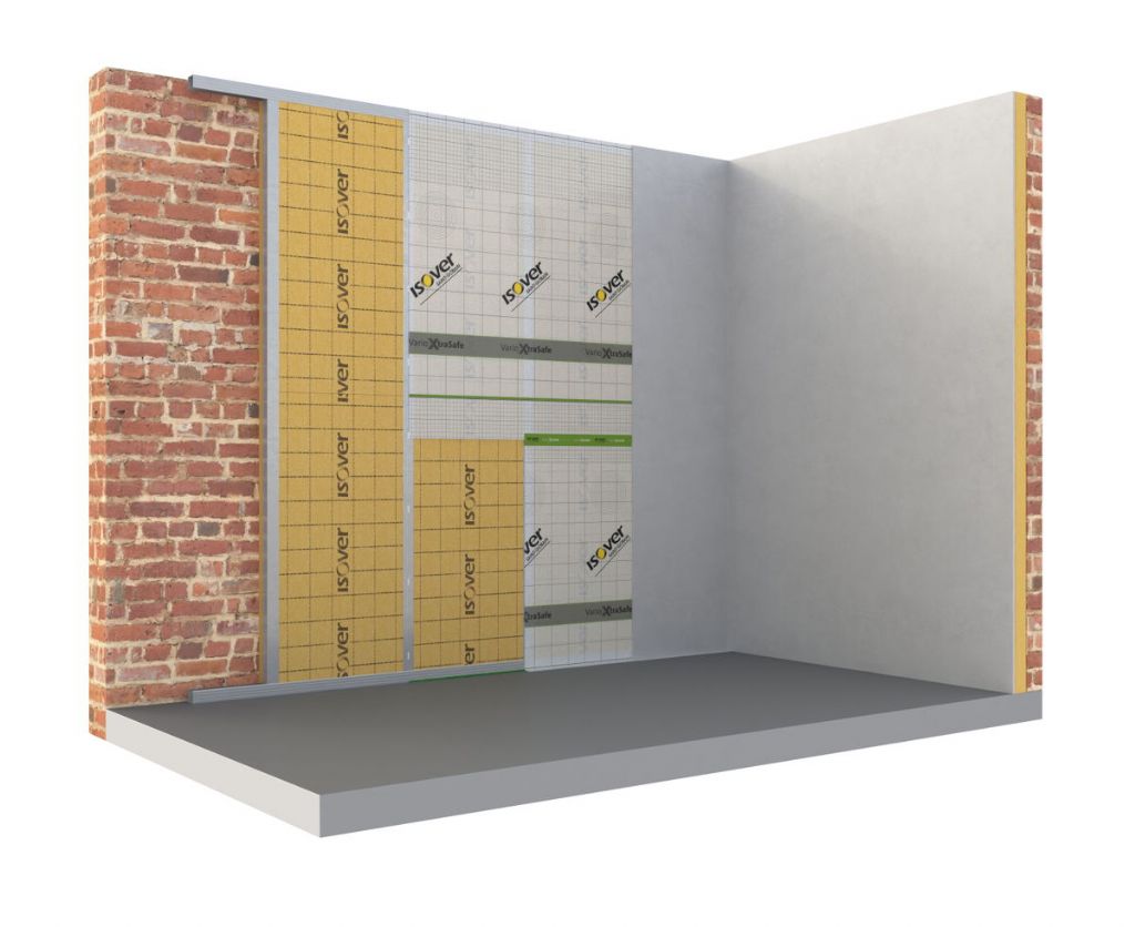Pour l’isolation intérieure, ISOVER propose le panneau Comfortpanel 32. Une incision longitudinale est prévue sur un côté du panneau, permettant de le glisser facilement tant derrière qu'entre les profilés Metal Stud en évitant ainsi la formation de ponts thermiques. L’étanchété à l’air est également garantie par les différents éléments Vario® Xtra : les rubans de fixation XtraPatch, le ruban adhésif XtraTape, le mastic d’étanchéité XtraFit et enfin le pare-vapeur hygro-régulant XtraSafe. Le système Vario® Xtra permet d’éviter les problèmes d’humidité et de condensation.